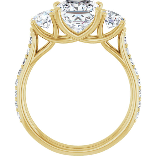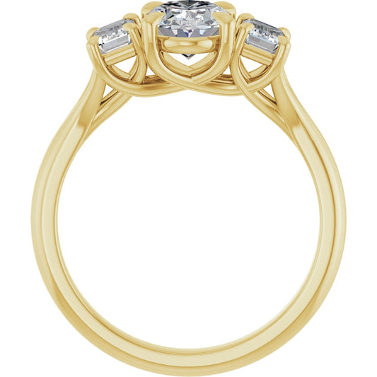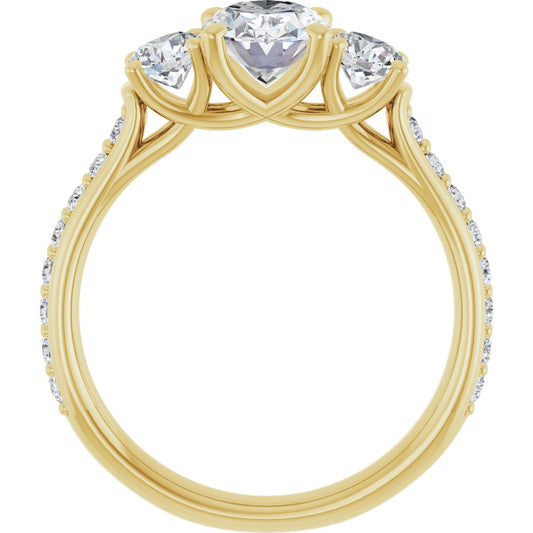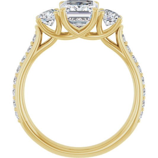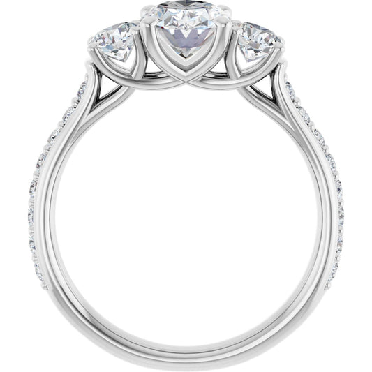 Three-stone engagement rings are a beautiful representation of the past, present, and future of your love story. Featuring a stunning center diamond flanked by two complementary stones, this style creates a striking visual impact while symbolizing the journey of your relationship. Ideal for the bride who seeks both significance and style, a three-stone engagement ring is a captivating choice that celebrates love in all its phases.