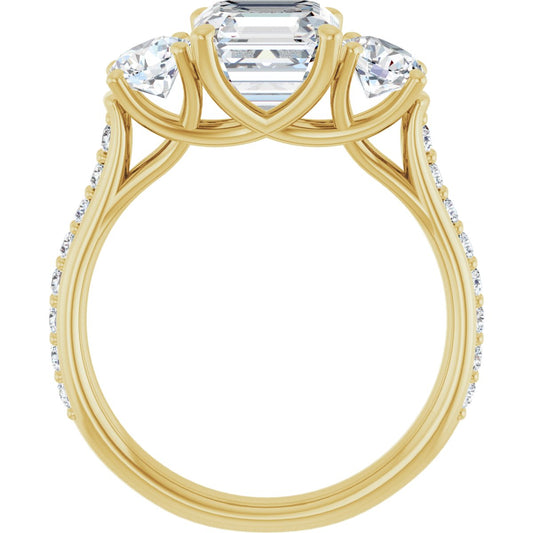 Three-stone engagement rings are a beautiful representation of the past, present, and future of your love story. Featuring a stunning center diamond flanked by two complementary stones, this style creates a striking visual impact while symbolizing the journey of your relationship. Ideal for the bride who seeks both significance and style, a three-stone engagement ring is a captivating choice that celebrates love in all its phases.