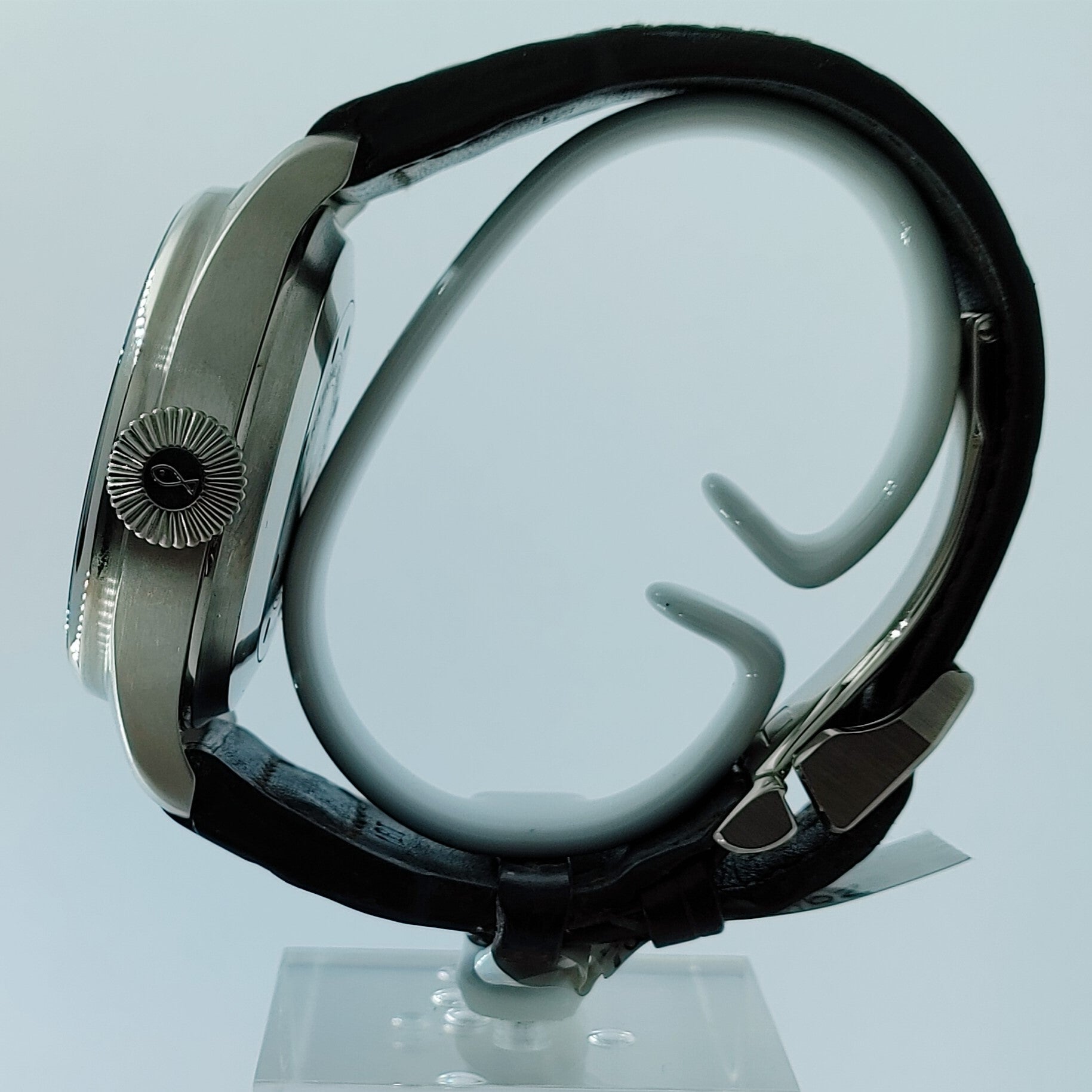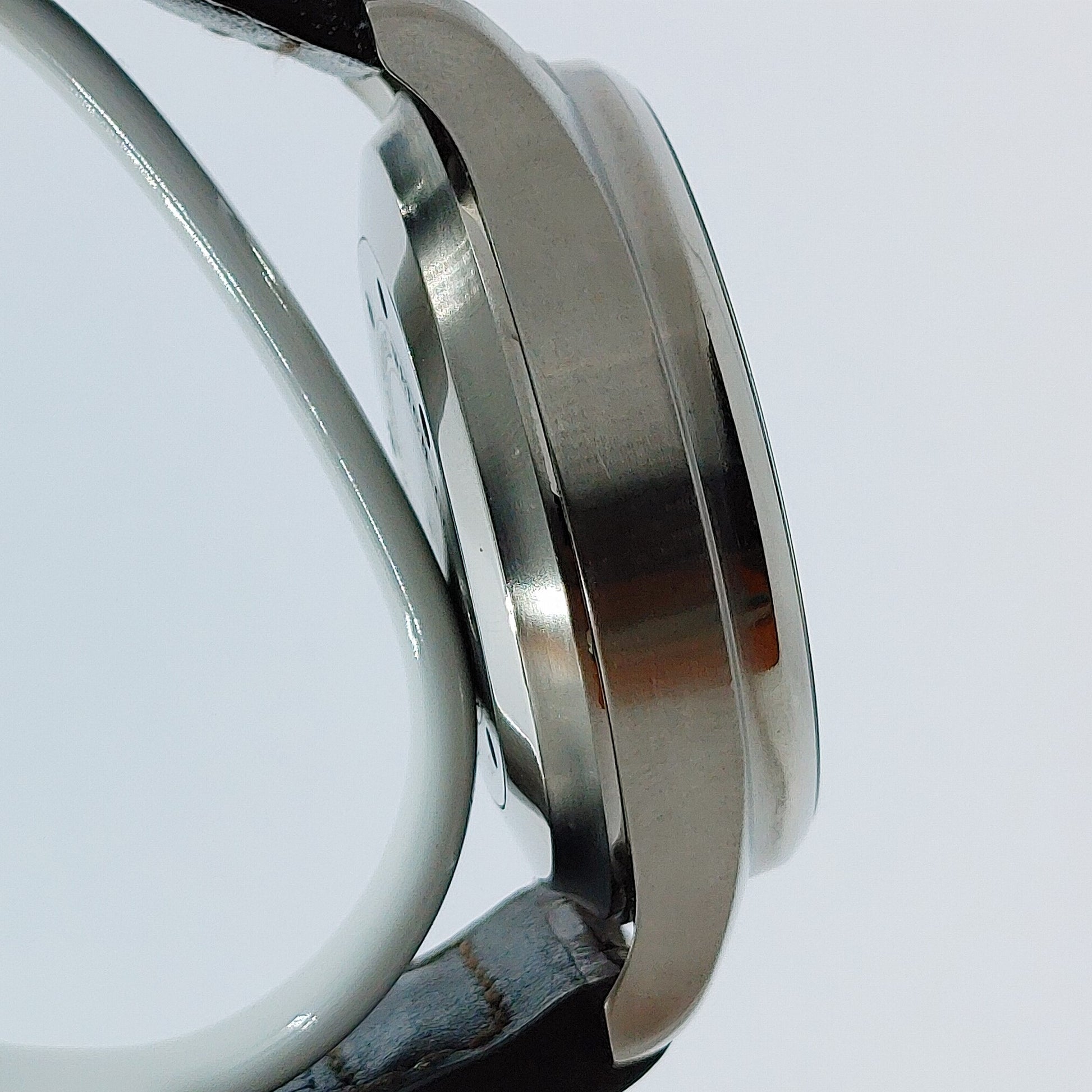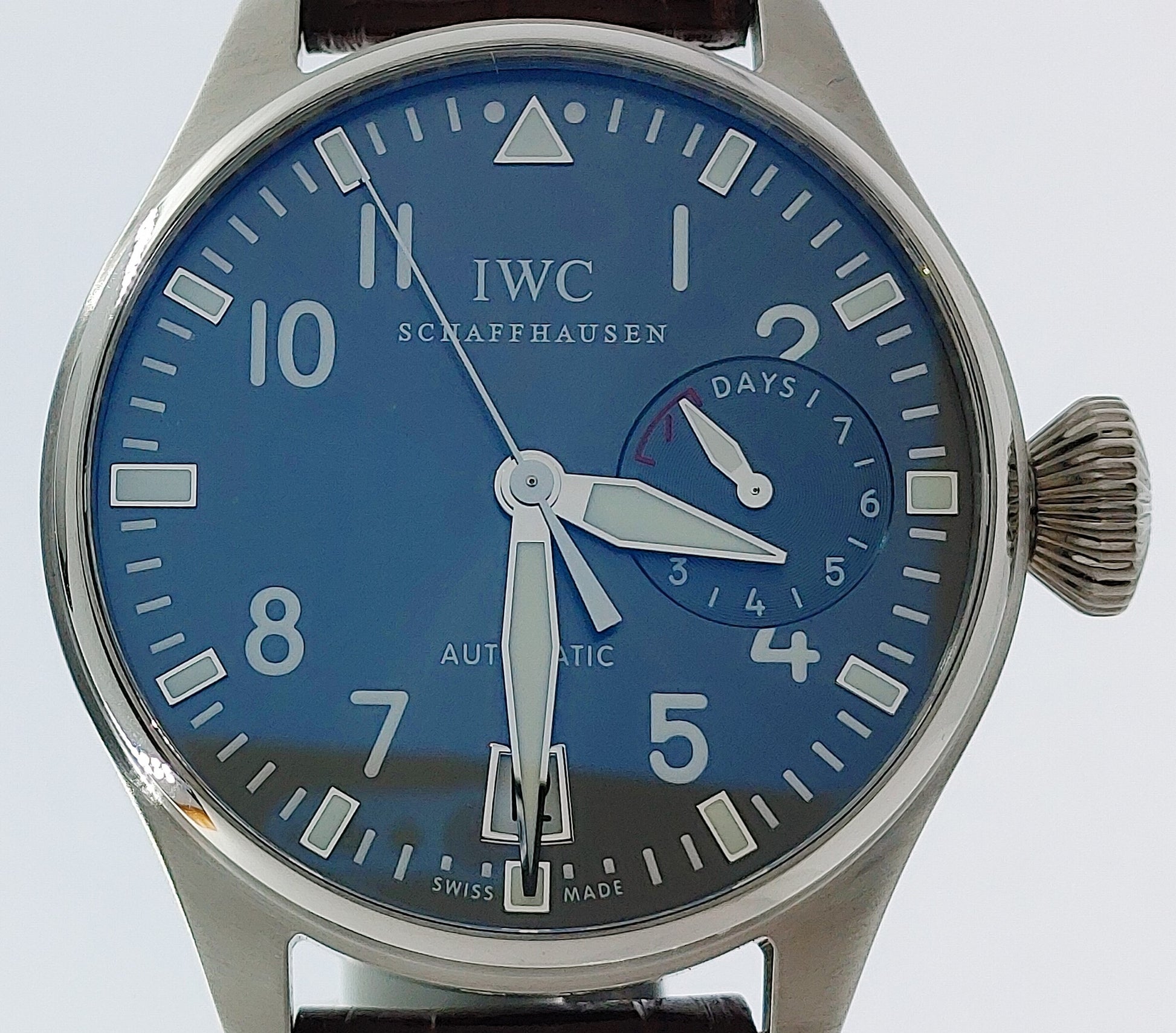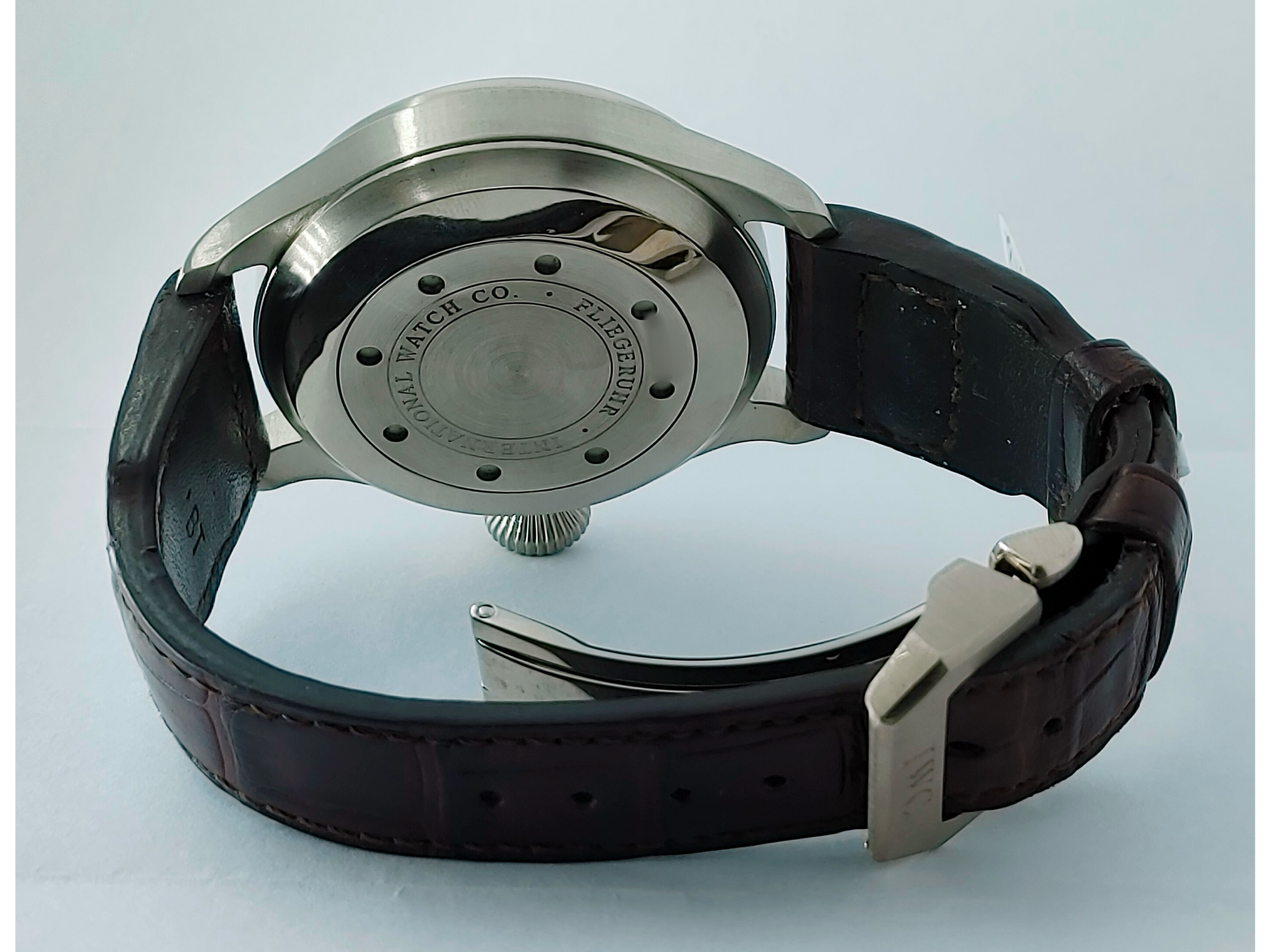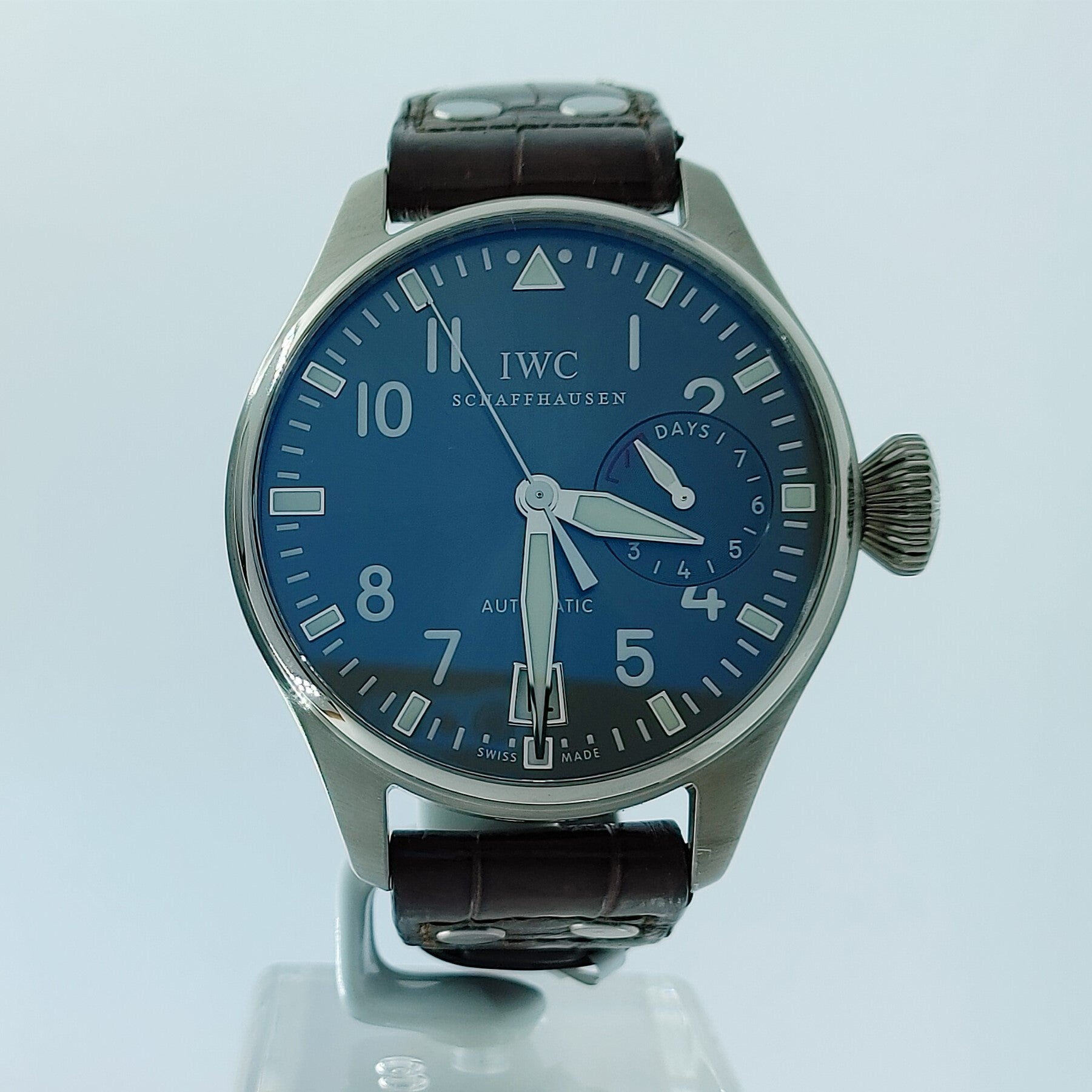 The IWC Big Pilot’s Watch IW500402 is a bold and sophisticated timepiece that embodies the IWC style. With a large 46.2mm white gold case, this iconic watch is designed for those who appreciate a commanding presence on the wrist. The grey dial features large, easy-to-read Arabic numerals and white luminous hands, ensuring excellent legibility in any lighting condition. The 6 o'clock date display and the power reserve indicator at 3 o'clock are additional features that enhance the watch's functionality while maintaining its clean, classic design.